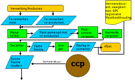 Voorbeeld van een stroomschema waarin kritische controle punten (ccp’s) in kaart worden gebracht.